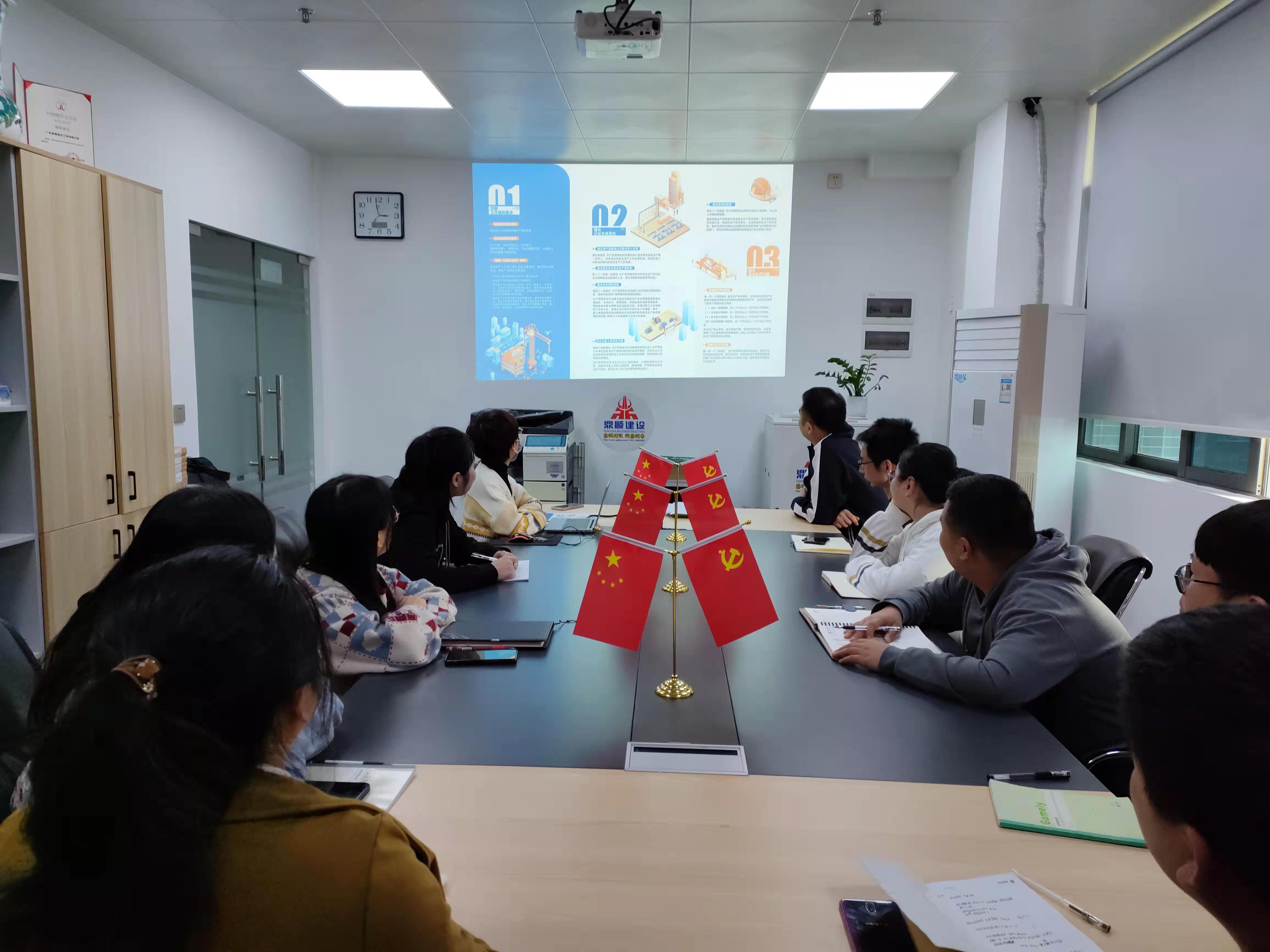 12月7日下午,为学习和宣传新《安全生产法》,鼎顺建设在加利源办公室开展新《安全生产法》解读培训活动。在培训活动中,我司播放了新《生产安全法》的解读视频、发放了安全生产宣传小册子,以及制作安全生产横幅送至各项目部,树立项目人员“以人为本、生命至上”的安全理念。