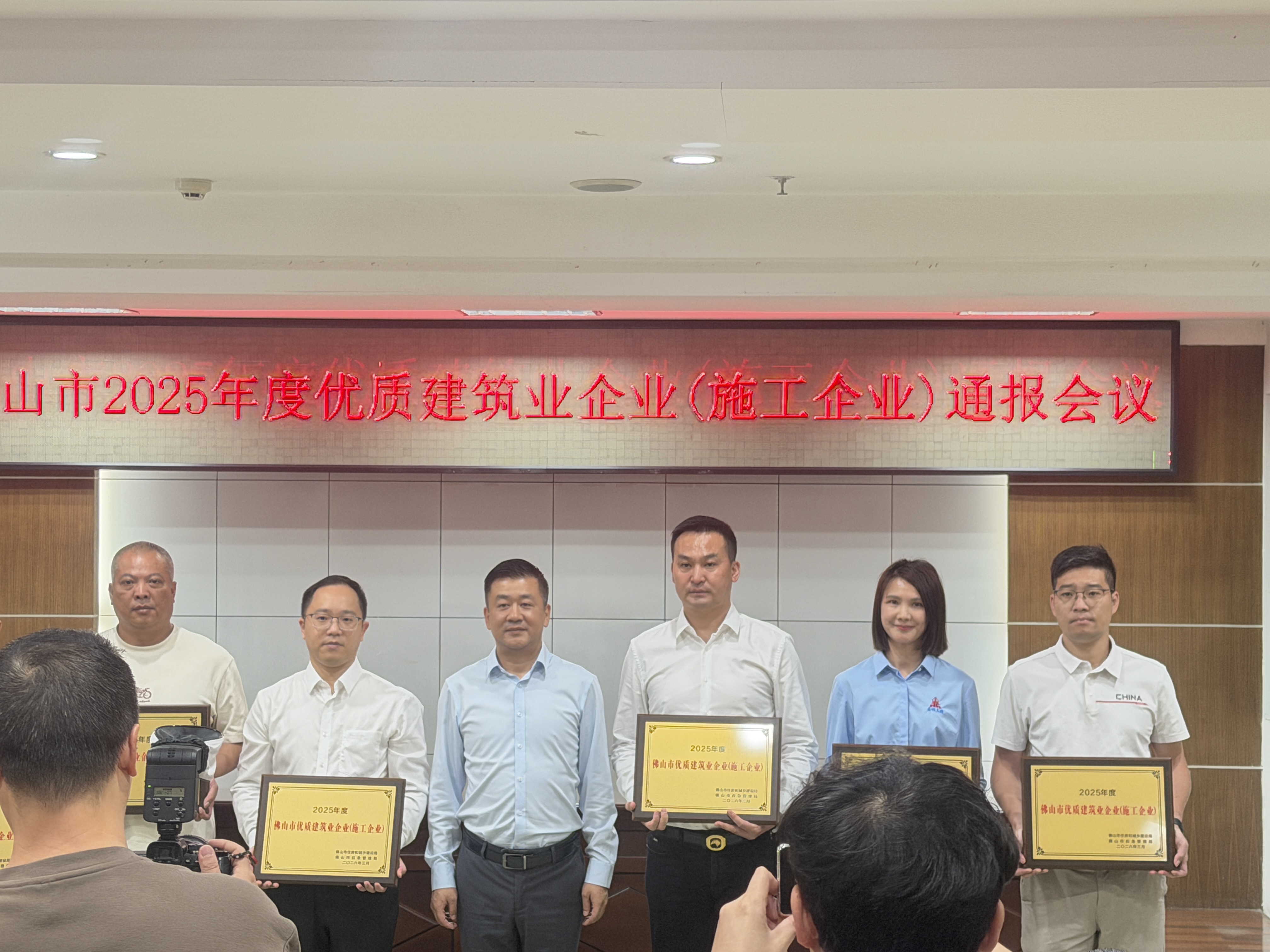 2026年3月31日上午,佛山市住房和城乡建设局隆重召开佛山市2025年度优质建筑业企业(施工企业)通报会议。市住房城乡建设局局长黄礼泉、副局长罗达等相关部门领导出席会议。会上正式公布了由佛山市住房和城乡建设局、佛山市应急管理局联合联合发布的《关于2025年度佛山市优质建筑业企业(施工企业)目录的通报》(佛建〔2026〕27号)。广东鼎顺建设集团有限公司凭借卓越的综合实力、健全的安全管理体系、诚信守法的市场表现以及高度的社会责任感,成功入选该目录,荣膺“2025年度佛山市优质建筑业企业”这一市级权威荣誉。